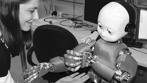Nel 2003 l’IIT è partito da un approccio di tipo bottom up per generare James, un piccolo robot umanoide di 75 chili di metallo e circuiti, nato per studiare i meccanismi che regolano la manipolazione e la presa degli oggetti. Nel 2010 James è stato sostituito da una versione robotica più complessa, iCub, un robot in grado di mostrare ben 53 diversi gradi di libertà nel movimento delle braccia e delle mani per manipolare gli oggetti, possiede un fine senso dell’equilibrio ed è in grado di apprendere dal comportamento umano, diventando intelligente.
