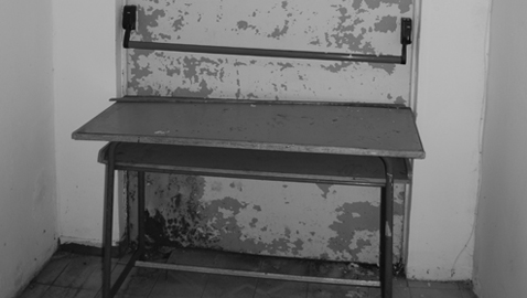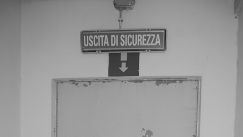I vetri sulle pareti più alte sono rotti e al centro della palestra è stato posto un telo enorme per impedire ai giocatori di bagnarsi nonostante sia una struttura interna. Percorrendo i corridoi dello stabile, il custode ci rivela che questo è stato fatto costruire da Benito Mussolini nella prima metà del ‘900 per ospitare orfani di guerra e figli abbandonati nella chiesa oggi sostituita dalla posta. Arriviamo nei bagni dopo aver osservato che le porte antincendio sono bloccate dai banchi per impedire che si sbriciolino.